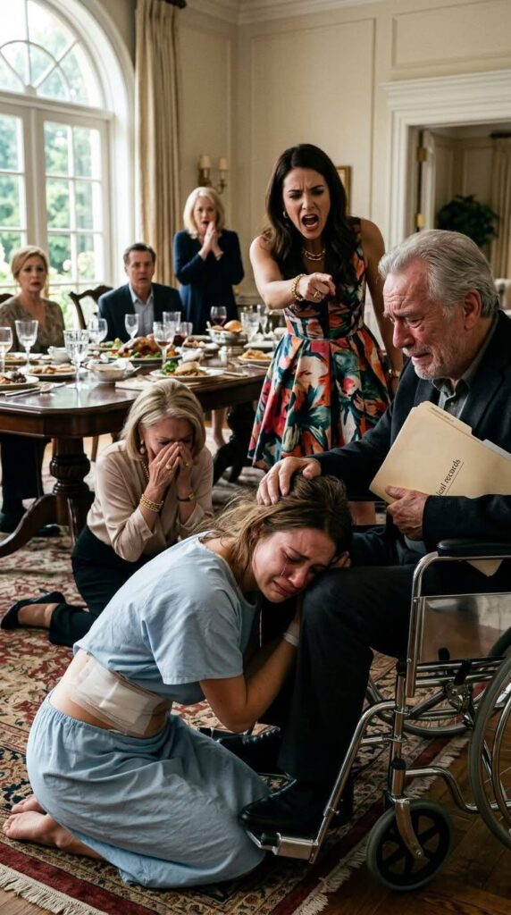 Suddenly, my father’s hand shot out. Despite his surgical recovery, his grip around my wrist was iron-clad. I froze. The entire room went dead quiet, twenty-two pairs of eyes locking onto the bizarre tableau.